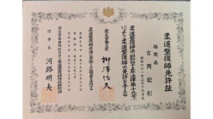 福岡県久留米市田主丸整骨院開業し現在は株式会社GLADJAPAN代表取締役(https://kurumeseikotuin.com/home/profile/)を務める吉岡宏彰